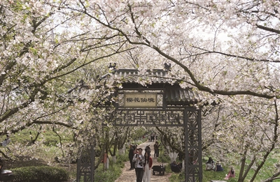 4月1日,游人在江西省南昌县凤凰沟景区樱花谷观赏盛开的樱花。近日,凤凰沟景区樱花进入盛花期。景区2000余亩樱花谷内,早樱、晚樱、迎春樱等20余个品种樱花次第绽放,春风拂面,花海连片,吸引不少游客前来赏花踏青。