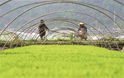 4月5日,农民在温州乐清市石帆街道青屿村集中育秧秧田拆除农膜。当天是清明节气。各地农民抢抓农时推进农业生产,广袤田野一派农忙景象。