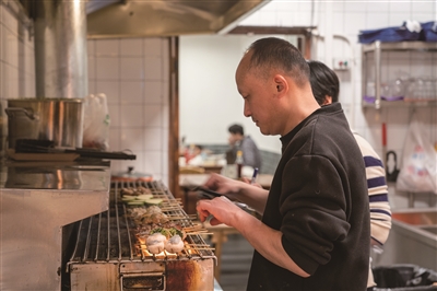 现在这家店,每天下午5点半开门,一直营业到凌晨12点半,一到周末,店里坐得满满当当,一晚要烤上千串,从开火开始,王厨手里的烤签就没停过,经常要排20多桌。可就算店里再忙,他在食材上也没打过折扣。
