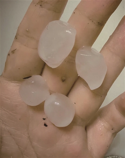 “昨夜刚过12点,电闪雷鸣,狂风骤雨,明显听到窗户被冰雹砸得啪啪响。”一位家住武汉市江岸区后湖的居民称,“今早(9日)去车里一看,车窗和车顶玻璃各砸出一个坑。”