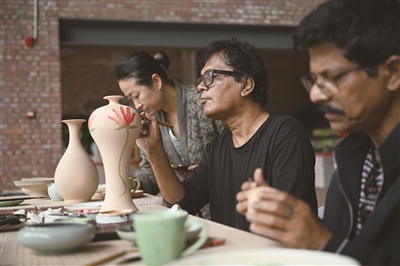 4月12日,在丽水龙泉市望瓯·陶溪川文创街区,中孟两国艺术家比邻而坐,在青瓷坯体上勾勒纹样、相互交流。今年恰逢孟加拉国加入“一带一路”倡议十周年,千年前沿海路远行的青瓷,如今再次成为连接两国的文化纽带。