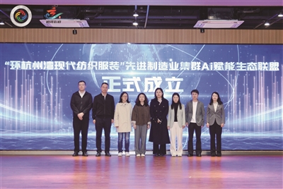 活动现场,“环杭州湾现代纺织服装”先进制造业集群AI赋能生态联盟正式成立。