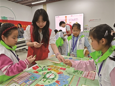 商报讯(记者 严斐 文/摄)4月11日,上城区杨家桥社区里传来一阵阵欢声笑语。商报小记者们化身“小小养宠官”,围坐在桌前,人手一张角色卡,正认真地帮一只虚拟狗狗规划“回家”之路——吃什么、病了怎么办、玩具要不要买……每一步都得精打细算。