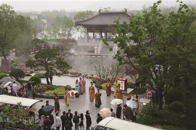 4月15日,第十五届中国国际园林博览会在温州启幕。围绕“百姓园博、国际园博、先锋园博、文化园博、全城园博”五大特色,本届园博会创新构建了“1个主会场+13个分会场+49个博览点”的一园多点全城园博体系,让园林景致深度融入城市肌理、贴近百姓生活。这是启幕当天游客在温州园博园省市城市展园西安园参观。