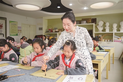 昨天,由中共杭州市委宣传部(杭州市文明办)主办、每日商报承办的“第二课堂优秀课程进校园”活动,走进采荷一小教育集团。来自杭州青少年活动中心美术部的老师们,为孩子们带来了一堂名为“和甲骨文做朋友”的趣味课程,让孩子们在触摸和创作中,感受传统文化的魅力,增强民族自豪感。