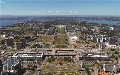 这是4月19日在巴西首都巴西利亚拍摄的城市中轴线和周围部分区域景观。巴西利亚位于巴西腹地中心,面积约5780平方公里,是巴西的首都和政治中心。1960年4月21日,巴西正式迁都巴西利亚。1987年,巴西利亚被联合国教科文组织列入世界文化遗产名录。