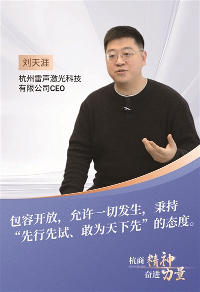 刘天涯:我认为杭商精神主要体现在几个方面:一是包容开放,允许一切发生,要秉持“先行先试、敢为天下先”的态度,勇于尝试,尝试了不一定成功,但不尝试肯定失败;二是追求创新,创业一定要有创新精神,创新未必立刻见效,但没有创新就难有真正的突破与成长;三是务实精神,要用实践说话,注重实际成效。
