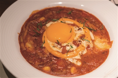 海南糟粕鲜虾蛤蜊意面也是惊喜满满,糟粕醋和意面结合,一开始还担心会踩雷,尝了一口直接被征服。糟粕醋的酸香清爽开胃,带着一点点微辣,完全不会刺激,面条吸饱了酸香的汤汁,吃起来爽口不腻。里面的鲜虾个头饱满,肉质Q弹,海鲜的鲜和糟粕醋的酸融合在一起,清爽解腻,不爱吃传统意面的人,一定会喜欢这款。