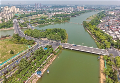 南水北调东线 启动新一轮调水 4月27日拍摄的位于江苏省扬州市江都区的南水北调东线输水通道高水河。 当日10时,根据南水北调东线一期工程2026年4月水量调度方案,江苏省江都水利枢纽工程管理处启动新一轮调水,南水北调宝应站同步启动调水。