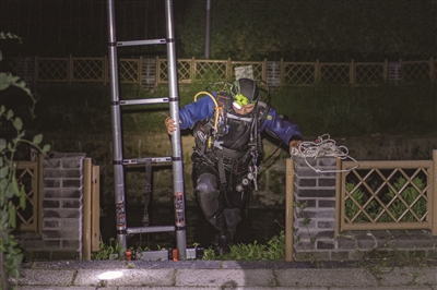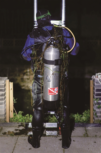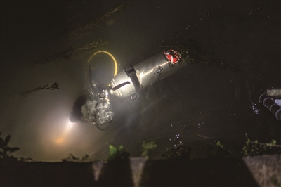 当天晚上十点,打捞员汤师傅赶到余杭,穿上潜水衣,背上氧气瓶,拿着探照灯和金属探测仪,开始在水里寻找手机。来来回回摸索了20多分钟,还是没找到。汤师傅估计,因为李女士男友用脚翻过淤泥,手机估计被埋了,要翻淤泥寻找,难度增加,要加收300元打捞费。李女士同意了。