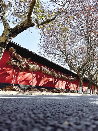 本报讯(清波街道 区文商旅集团) 近日,一条20米长的“落叶龙”在德寿宫的红墙外现身,吸引过往人群纷纷驻足观赏。这条钢筋为骨、落叶为鳞的“落叶龙”,是中国美院2023年秋叶艺术节的装置作品之一,取名《舞龙》,象征力量与智慧,寄托吉祥与福祉。过往市民或拍照留念,或捡起地上落叶写上祈愿祝词后贴于龙身,希望汇聚更多美好、充盈龙年福气。