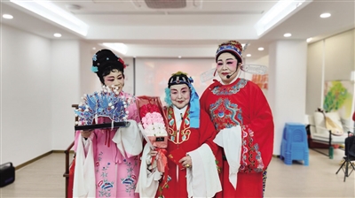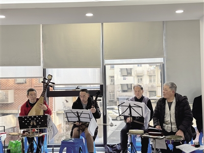 自从青年路幸福邻里坊打造好投入使用,秋红越剧团每周三都来颐养园排练,你拉二胡我弹琵琶,梆子节奏敲起来,婉约清丽的江南越剧腔,柔中寓刚的风格,让每一个来往邻里的人都享受到了。