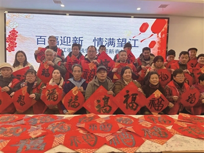 本报讯(望江街道) 福启新岁,万事顺遂,龙年春节进入倒计时,新春的氛围越来越浓。近日,望江街道在清泰门社区新时代文明实践站举行了“书百福,贺新春”活动,在墨香萦鼻、喜庆热闹的氛围中,传递着温暖美好的祝福。