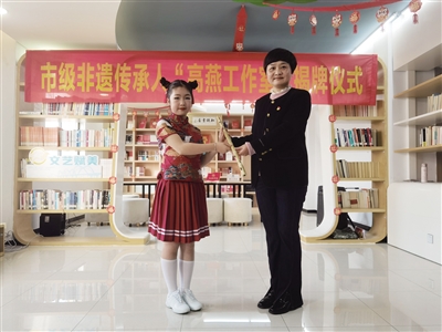 本报讯(九堡街道) 近日,杭州市级非物质文化遗产“打莲响”传承人高燕在九堡街道宣家埠村党群服务中心成立工作室,并正式收徒——她把一根简朴的莲响棒,交到了徒儿凌紫珊的手中。这个小姑娘,虽年仅12岁,但现场展示起“打莲响”表演,动作娴熟、响声悦耳,学艺的年份已是不短。