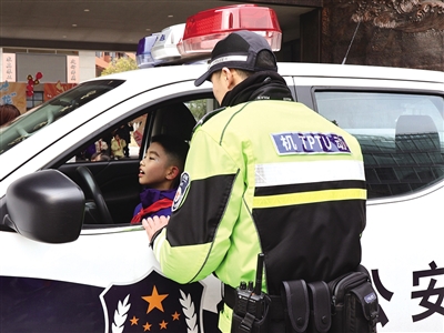 浙江师范大学附属杭州笕桥实验中学特邀上城区笕桥交警中队的交警到校对学生开展交通安全第一课。交警将警车开进校园,让学生们上车感受驾驶时的视线盲区,从而学会更好地保护自己。