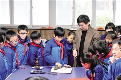 杭州市娃哈哈小学特邀非遗传人为同学们介绍珍贵的文化遗产——拓印。同学们仔细聆听拓印艺术讲解,并现场体验拓印技艺,感受中国手艺人的智慧和非遗技艺的魅力。