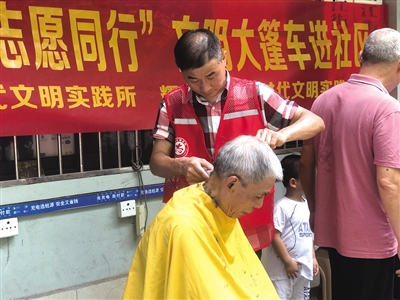 平日里,楼小忠经常参加社区的便民服务活动,为辖区居民提供免费理发服务。这件事,他已经做了十多年——最早在天福花园开店的时候,他便开始做公益理发。每个月,无论店里生意多忙,他都会抽出时间到老年公寓为老年人理发,风雨无阻,从未间断。