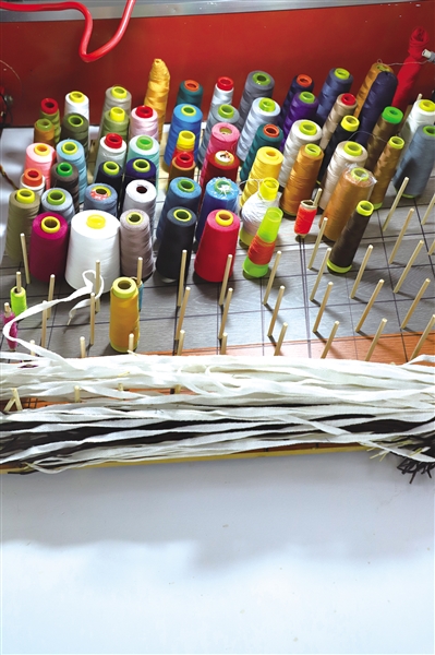 在这里,居民们可以排队取衣服,一边等待一边聊天。张大姐也时常与顾客们分享生活琐事,笑声和谈话声此起彼伏。五颜六色的线塔整齐地排列在墙上,做好的衣服挂着牌子整齐地摆在货架上,一切都显得井然有序。