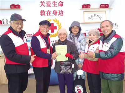 辖区居民在红十字志愿者的协助下,完成人体器官捐献志愿登记