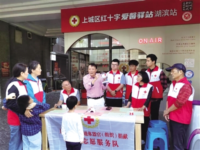 区红十字会也十分注重培育“预备役”,为人体器官(遗体、组织)捐献工作及时补充“新鲜血液”。全区成立人体器官捐献志愿服务队5支,进一步加大对人体器官志愿服务队的支持保障力度。上城市民朱强荣作为全省首位器官捐献自愿登记者,带领团队每月定期在湖滨步行街“红十字爱馨驿站”开展志愿服务,目前,登记人数已超3000人;全省首个省级遗体捐献宣传登记点落户南星街道,成为向周边居民普及捐献知识、完成捐献登记、提供法律咨询等“一站式”服务窗口。