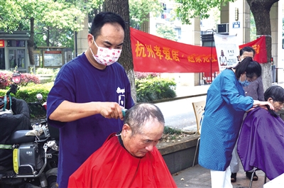 为什么又会想到要为居民理发?何大哥说:“之前,社区去工地办了场公益理发活动。我也可以为社区的老人免费理发呀!”于是,他主动联系社区,希望可以参与到便民服务活动中来,“用这门手艺为居民做点事,我的生活也能更充实。”