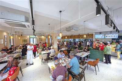 “我们的食堂可是得到了杭州市五云山疗养院营养餐团队的专业支持,为给居民提供一个舒适的环境,我们营造了一个花园餐厅的氛围,除了以绿植、花卉、手绘等装点装饰,让居民舒心用餐之外,平时也可以作为休闲休息的好去处。”食堂负责人赵曼曼说。