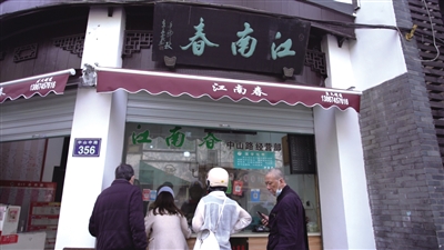 位于中山中路356号的江南春,是老底子糕点铺的代表。唐代诗人杜牧曾作《江南春》:“千里莺啼绿映红,水村山郭酒旗风。南朝四百八十寺,多少楼台烟雨中。”糕点铺江南春的名字也由此而来。
