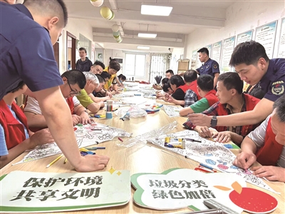 活动伊始,长龙航空公司的李警官给学员讲解了世界环境日的由来。接下来,绿洲公益的高老师把学员两两分组,给每组学员们送上了一个空白的风筝和一盒水彩笔,让学员们用水彩笔给风筝涂上颜色,描绘出自己心目中的绿水青山。航空公司的警官们分别与每组学员结对,与学员们一起动手制作风筝,并借此机会告诉他们乱扔垃圾对大自然的危害。