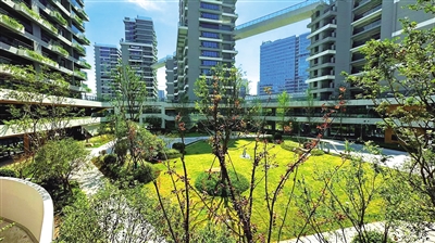 “望江单元未来社区九号地块充分贯彻绿色、生态的海绵城市建设理念,通过海绵城市与全方位的立体绿化结合,达到功能性与景观的融合,满足未来城市居民对于自然生态的体验需求,使未来生活更舒适宜居。”区海绵办相关负责人说。