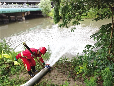 区综合行政执法局以雨为令全力防汛,落实1带班指挥长+5大条线+54支应急队伍+N名一线作业员值班值守,提前预排预降,利用区美丽河道智慧管理系统开展线上巡检,实时监测河道水位和河道情况;及时落实一点一方案点位保障措施,开展雨中巡查处置工作,及时清理雨水口树叶,恢复管道正常运行,消除积水隐患,突出低洼处、下穿点、闸站设施等点位。市级防汛Ⅲ级应急响应以来,排查消除雨水箅子堵塞等隐患300余处,累计出动人员5000余人次,启用强排泵车6次,辖区内无大面积积水。