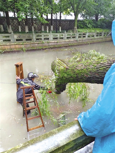闸弄口街道出动养护单位、应急队伍、17个社区以及物业服务单位共240余人次,重点巡查地下空间、下穿道、在建工地等隐患点位,发现倒伏树木7处,道路积水13处,全部处置完毕。