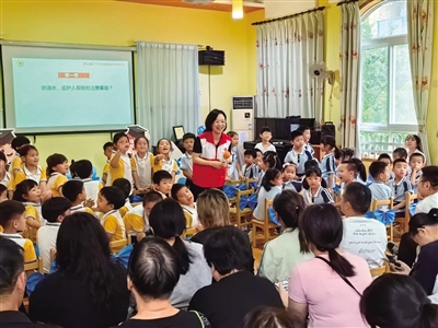 本报讯(区红十字会) 繁花相送的季节,栀子花开的芳香。近日,即将迈入小学校园的四季青街道三新幼儿园大班小朋友们迎来了幼儿园的“毕业季”。区红十字会应邀为参加“毕业典礼”的小朋友和家长送上“预防溺水”专场讲座。