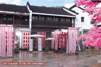 白蛇与许仙的正缘故事,是杭州独一无二的非物质文化遗产。浮生若梦,杭州携你入梦——7月13日,清河坊历史街区化身《白蛇:浮生》主题街区,让影片中的宋代市井巷陌、酒楼茶肆、烟火浪漫与现实场景逐步重叠,在叭蜡子巷广场复刻了“浮生一日”打卡场景。