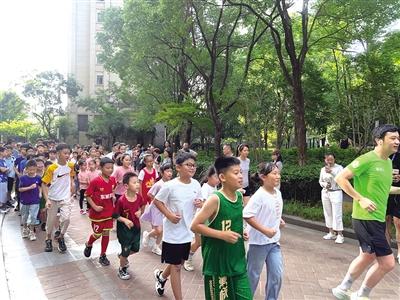 平时从事知识产权方面工作的上官光将,也是小区资深的志愿者,每天早上7点跑步一直是他的固定项目。“以前是我自己跑,跑着跑着发现几个熟悉的孩子每天都跟在我后头,后来我和家长们一拍即合,干脆带着大家一起跑。”