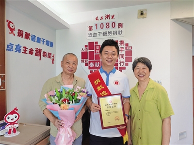 8月6日,经过近6小时的采集,张骏骐顺利完成324毫升造血干细胞混悬液的捐献,成为浙江第1080例、杭州第333例、上城第52例造血干细胞捐献者。
