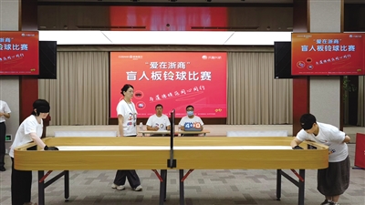 本报讯(区残联) 8月8日是全民健身日,由区残疾人联合会指导、区盲人协会主办,浙商银行杭州分行、杭州市中医院支持的第二届“爱在浙商”盲人板铃球比赛在这天顺利举行。
