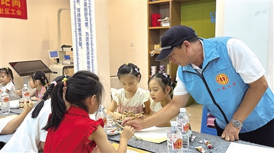 在工会的组织安排下,自7月12日起至8月底,郭建合师傅公益国画课每周五、周日上午都在社区工会“爱心驿家”开课。“开课后,小朋友们都很喜欢,还有不少下课后一直追到门岗。”