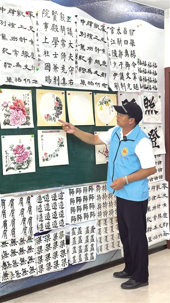 说起郭师傅,家长们露出了亲切的笑容。“他是我们小区东一门的保安,日常出行常能见到,工作认真负责,后来才发现他身上竟然藏着这样的技能,不得了不得了。”当提及怎么发现这位宝藏保安时,站在一边旁听的笕桥街道工会副主席张苹说:“有一次工会组织新就业形态职工开会,恰巧看到郭师傅的画,我们眼前一亮。原来小区里‘藏龙卧虎’呢。”