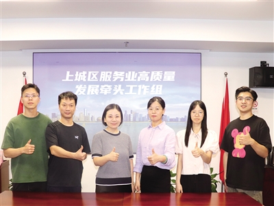 服务业高质量发展涉及行业多、部门多,如何发挥好各部门资源优势、推动资源要素集聚非常重要。今年初,工作组研究起草攻坚行动方案,按照五大行业类别,由5个行业主管部门各负责一个攻坚组、33个成员单位配合,建立统筹协调调度工作机制。同时,不断优化完善考核办法,加大部门招引力量,形成全区招商一盘棋浓厚氛围。下一步,工作组将持续紧跟省市发展战略研判攻坚方向,努力为上城经济高质量发展打造新引擎和新动能。