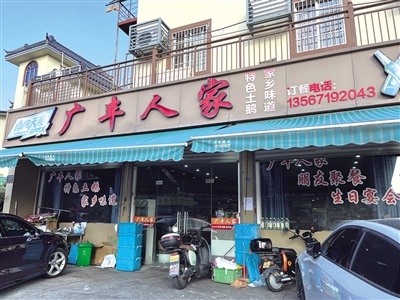 吕奏雄的店叫“江西广丰人家”,在三村村开了近9年。就在同一条街上,短短300多米内分布着13家江西菜馆,其中9家打出了“广丰”字号(江西上饶市一个辖区),正因如此,三村村得了个外号——“广丰村”。而吕奏雄的店是这里最早的一批“老字号”之一。