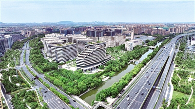 今年4月,智慧城与周边的笕桥、彭埠、九堡、丁兰四个街道,组建起“一城四街”联动发展共同体,实现产业空间资源共用共享。