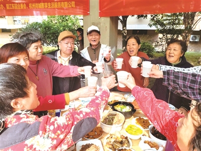 大家围坐在一起,品尝着彼此的手艺,交流着生活的点滴,欢声笑语不断。张颖爷爷与老伴季琴杏奶奶还在邻居节上认识了不少新朋友,“我们搬过来已经十几年了,互相之间都不太熟悉。借今天这个机会,我们做几个菜,和大家一起聚聚,彼此间马上熟悉起来了,很开心!”