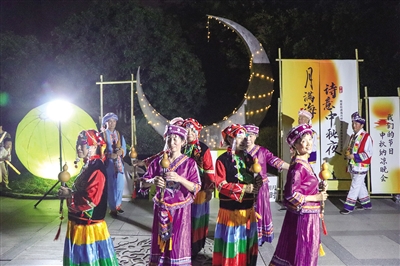 街、社两级也积极引荐辖区的文化能人,号召文化能人参与到文化特派员项目中,在街道、社区、特派员三方对接下,一场以古海月桥为舞台的“月满海月桥 诗意中秋夜”晚会就应运而生。9月14日当晚,古海月桥装点一新,灯光璀璨,社区文化能人逐一献上朗诵、舞蹈、走秀、葫芦丝等表演,晚会气氛一再被点燃。“这次晚会,是社区邻里之间的一场相聚,大家同唱一首歌、同舞一首曲,欢声笑语不断,这就是文化赋能居民幸福生活的具象化。”海月桥社区书记赵越说道。