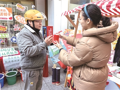在知识问答区域,更是排起了长队,垃圾分类、反诈知识、交通文明你问我答,凡是参与问答的骑手都能获得一份社区为他们准备的暖心礼物,“有得吃还有得拿,你们真好!”一句朴素的话语,也是骑手们的真实感受,活动现场,有骑手表示也愿意加入到社区的志愿服务队伍,在自己空余的时间来参与社区活动,做一个文明有礼的新杭州人。