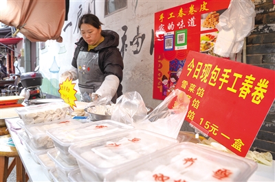 祁姐正说着话,便来了五六位顾客,带走了三四包春卷皮,其中有一位来自山东的张先生,已经回购好几次了,“我老婆是杭州人,在我看来,杭州人买春卷皮回家包春卷,就和我们北方人过年,一定要包顿饺子是一样的,都是过年少不了的仪式感。”