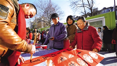 本报讯(小营街道) 近日,小营街道“多彩吾合家”幸福邻里坊热闹非凡,一场别开生面的“文化进万家·欢乐迎新春”文艺志愿服务活动在这里举行。此次活动,是2025迎新系列活动之一,主办方邀请了许多书法家、表演艺术家与居民文艺骨干为大家送上福字和文艺演出,为辖区居民带来一场文化盛宴。
