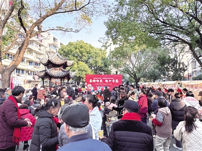 与此同时,舞台表演与年味展览也是精彩纷呈:合唱舞蹈、小品越剧、旗袍走秀……赢得台下一片叫好;杭州的“老底子”菜篮子和年俗手工艺品成了展陈区域的亮点,让众人仿佛置身于久远的年代集市;游乐打卡区、新年心愿墙、果蔬圈圈乐等互动活动更是将气氛推向了高潮……参与者们在糖画、拓印、书法等市集摊位浏览打卡,在欢声笑语中结束了愉快的体验。