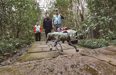 本报讯(区应急管理局) 近期,上城探索引入了宇树科技的“机器狗”,为皋亭山护林队伍增添了科技“新成员”,助力森林防火工作。