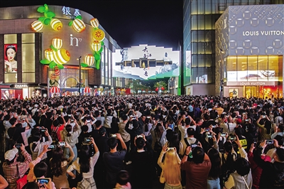 自2月9日开始,“文艺赋美”盲盒音乐会第七季在此精彩上演。为期一周的音乐会以“拆盲盒”的惊喜形式,吸引市民游客驻足。在这里,既有昆曲《牡丹亭》的婉转柔美、越剧《新龙门客栈》的侠骨柔情,也有传统名曲《金蛇狂舞》与《China E》的电子混搭……从传统乐器的创新演绎,到经典影视、游戏音乐的跨界改编,多元风格相互交融,让观众大饱耳福和眼福。