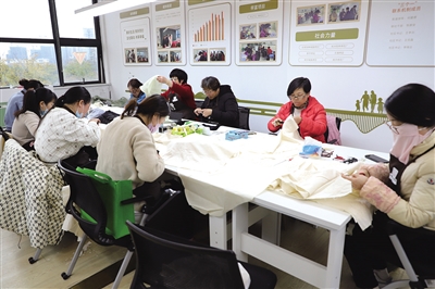 大唐苑社区党委链接资源盘活闲置用房,打造“拾光”共富工坊,通过社企合作开展共富技能培训,助力低收入妇女以手工作业稳定增收,让“指尖技艺”变身“指尖经济”,目前已为20多位居民提供就业岗位。“现在不仅能带孩子,还可以在工坊兼职,一个月也有一定的收入。”社区居民赵女士因要照顾家庭,没有固定的收入来源,现在,她在家门口就能实现就业,让她幸福感倍增。